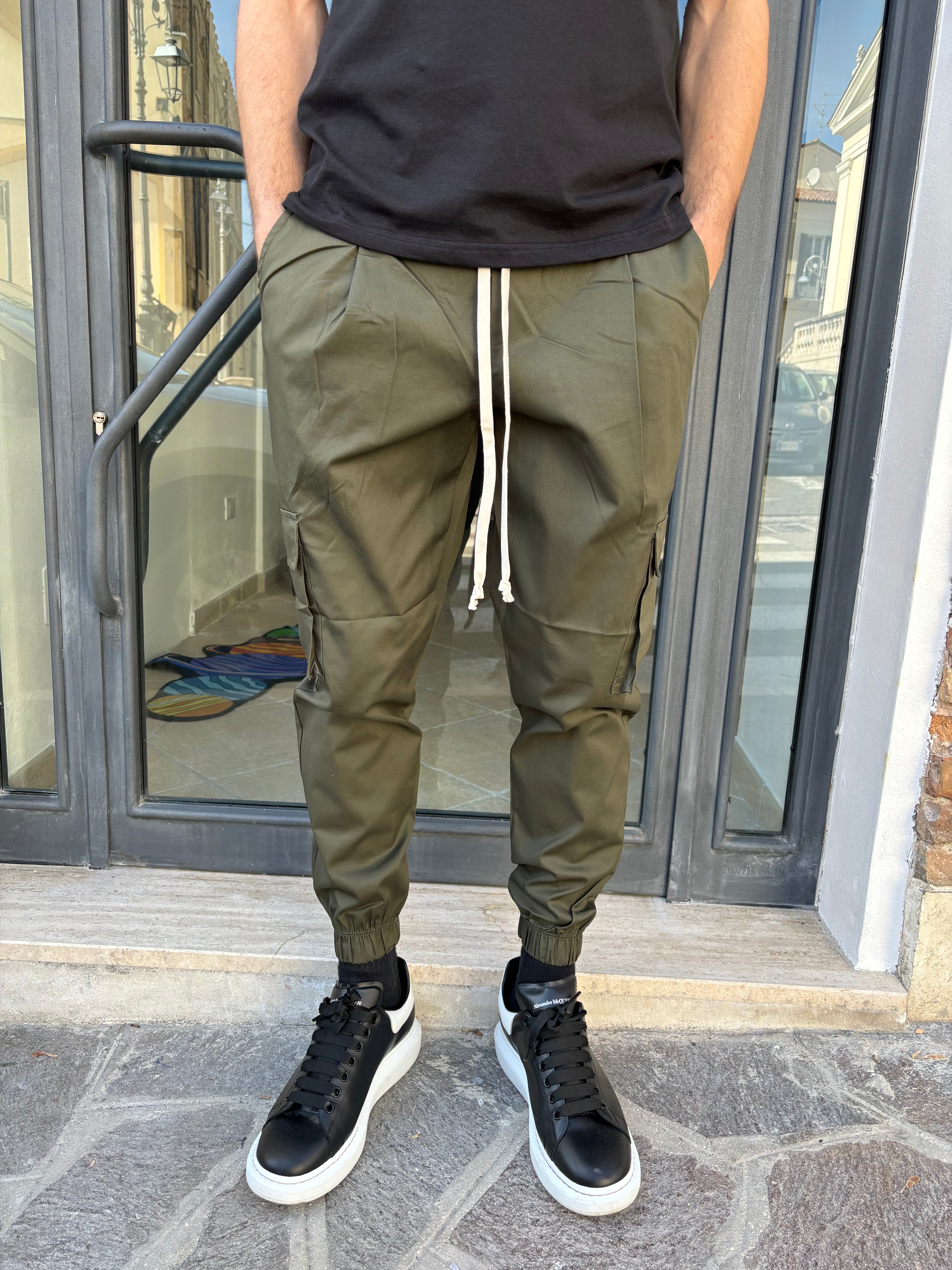 Pantalone con elastico caviglia e tasconi verde