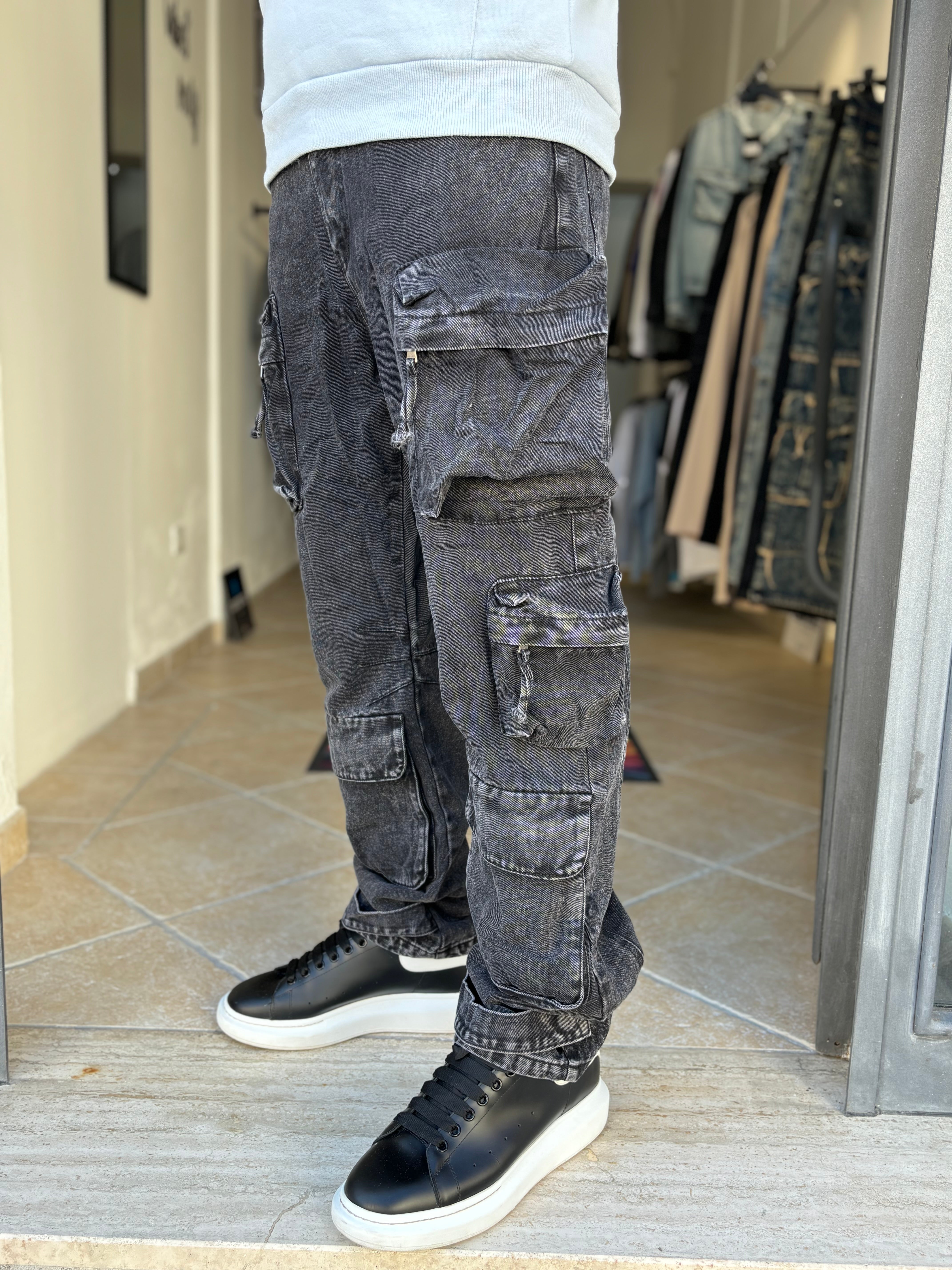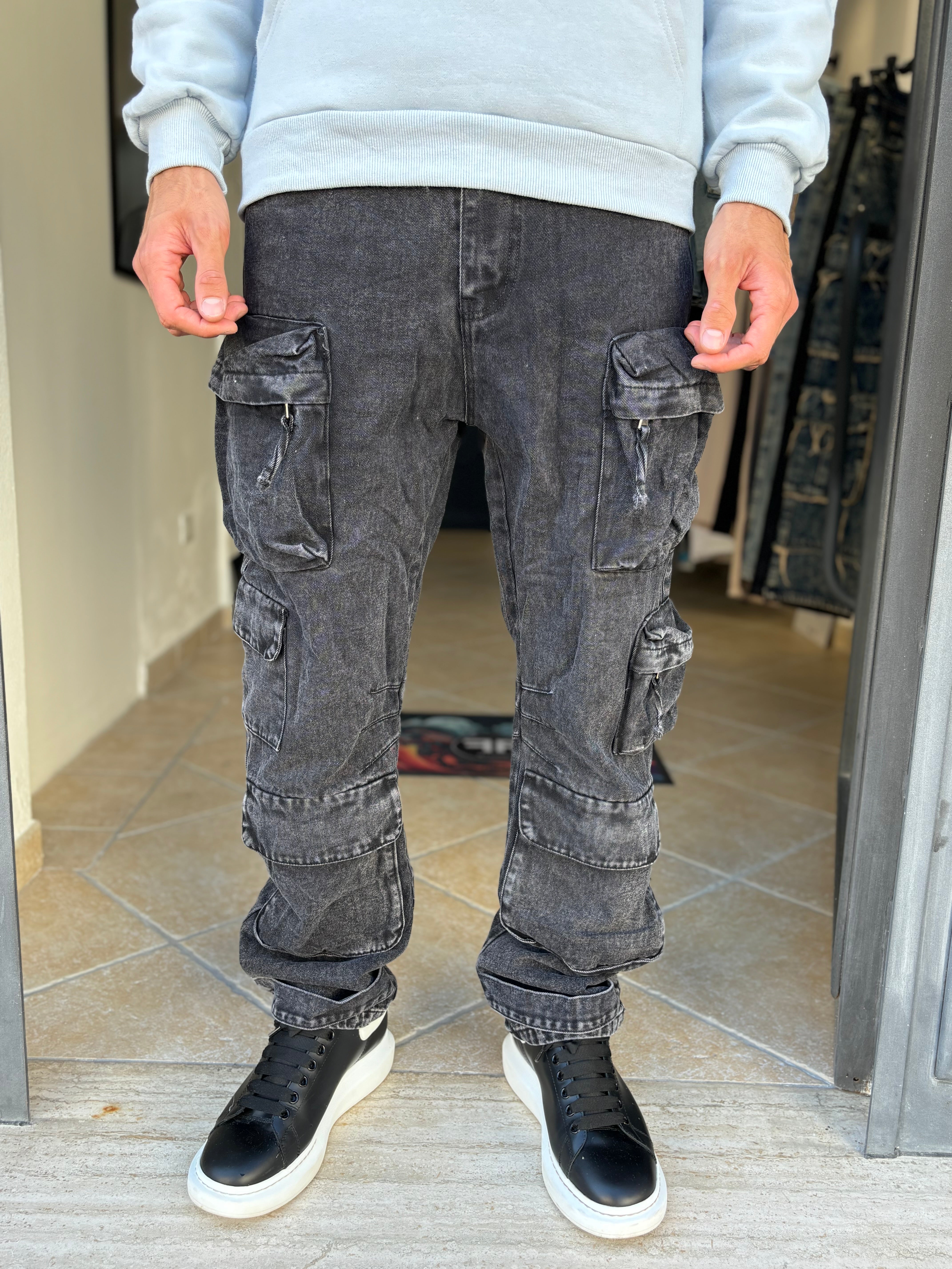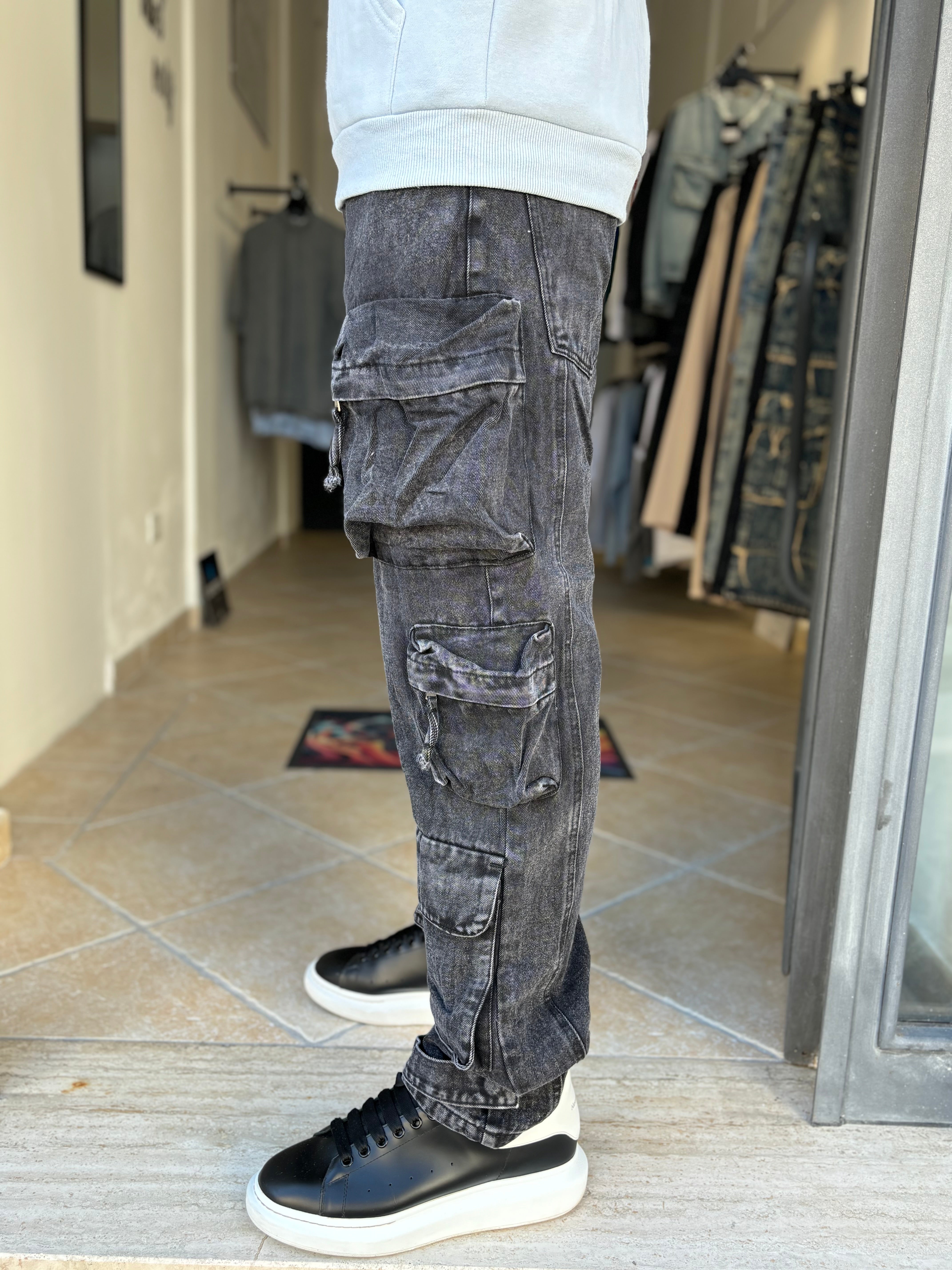 Pantalone jeans nero multitask