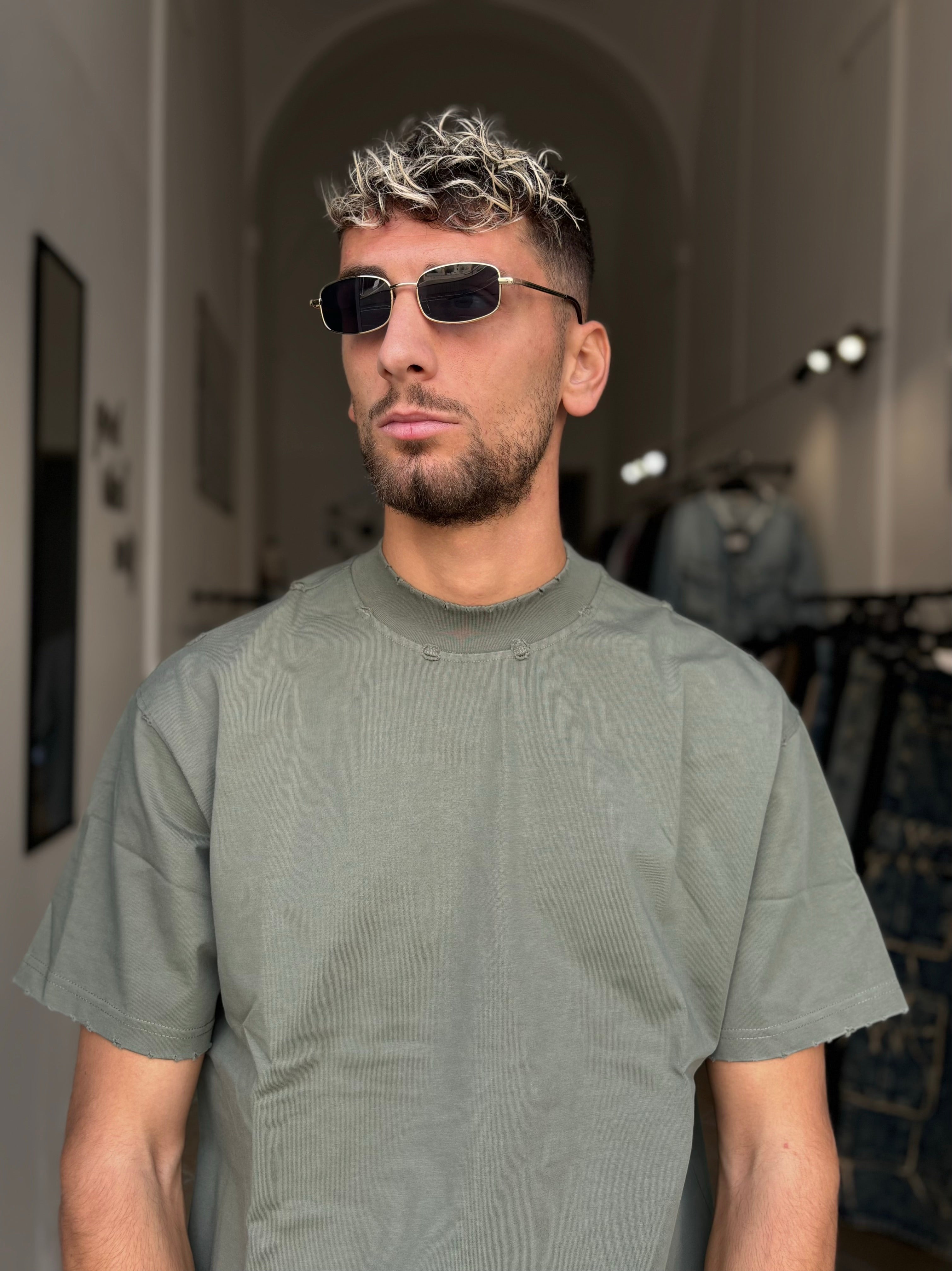 Modello in foto, 188 cm, indossa una L